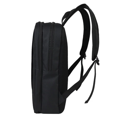 Mochila Porta-Notebook modelo "FORT". Fabricada en tela poliéster 600D/PVC. Capacidad 14 litros, tamaño 28 x 42 x 12 cm. Contiene 2 compartimentos interiores forrados en nylon, cuerpo completo: uno posterior (de seguridad) y otro central, ambos reforzados y acolchados, además de 2 compartimentos (bolsillo) delantero con cierre cremallera lateral. Espalda acolchada con red de ventilación.