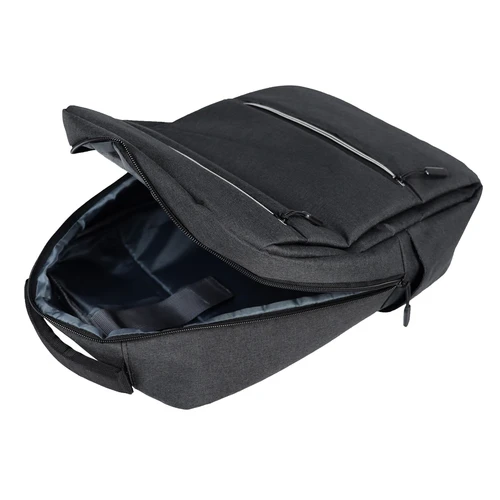 Deluxe Mochila Porta-Notebook modelo "NESS". En tela poliéster 300D/PVC denim + eco-cuero PU 210D. Capacidad 14 litros, tamaño 30 x 43 x 11 cm. Incluye 2 compartimentos interiores reforzados y acolchados para Laptop, 2 amplios bolsillos delanteros, tiradores de cierre engomados, correa ajustable y espalda acolchada.
