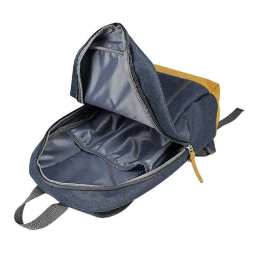 Mochila Porta-Notebook modelo "SOUL". En tela poliéster 600D/PVC con refuerzo inferior y tiradores de cierre en 210D/PU color marrón. Capacidad 19 litros, tamaño 30 x 45 x 14 cm. Incluye compartimento interior reforzado y acolchado para Laptop. Bolsillos interiores y delantero.