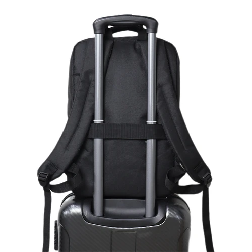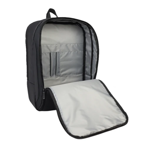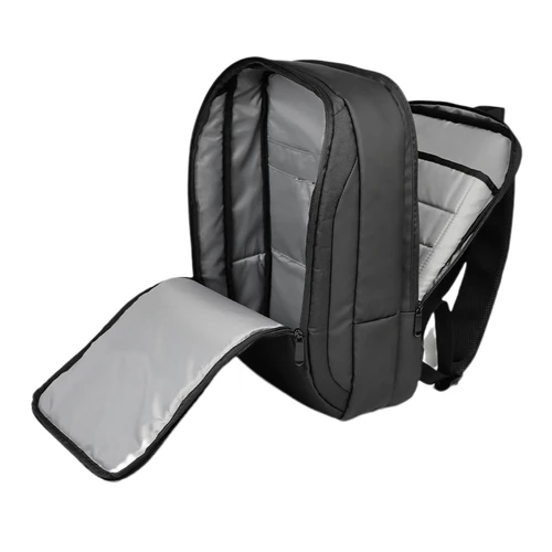 Deluxe Mochila Porta-Notebook modelo "VECTOR". En tela poliéster 600D/PVC + eco-cuero PU 210D. Capacidad 15 litros, tamaño 29.5 x 42 x 12 cm. Incluye 2 compartimentos interiores reforzados y acolchados para Laptop, espalda acolchada con red de ventilación + bolsillo de seguridad con cierre y bolsillo delantero.
