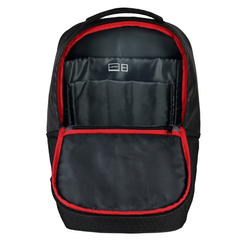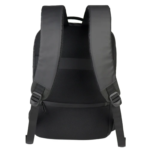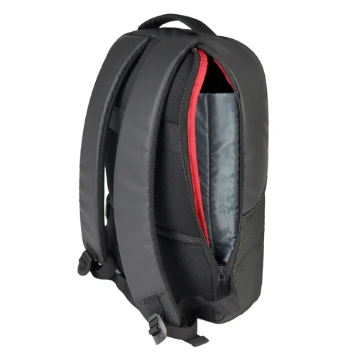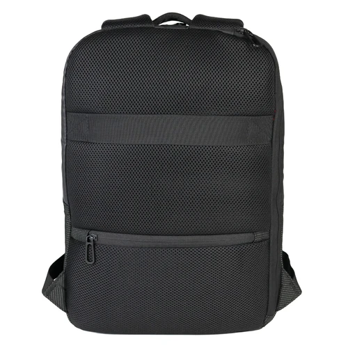 Deluxe Mochila Porta-Notebook modelo "WENZER". En tela poliéster mallado con membrana epitelial + eco-cuero PU 840D. Capacidad 16 litros, tamaño 30 x 44 x 12 cm. Cuenta con compartimiento delantero para notebook y tablet, + bolsillo delantero + compartimento principal con apertura posterior lateral (en vertical) de seguridad, para acceso directo a la notebook. Sujetador de Carry-on. Espaldar y correas regulables acolchados, y un cuarto compartimento (bolsillo) en el espaldar, para guardar elementos pequeños con máxima seguridad anti-robos.