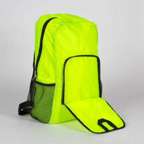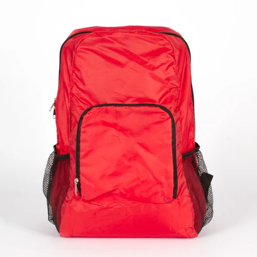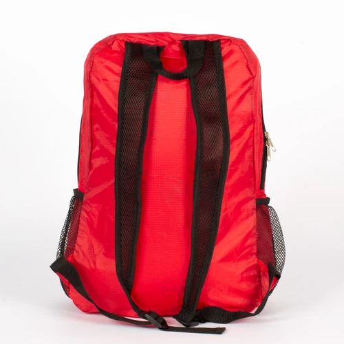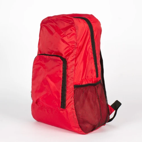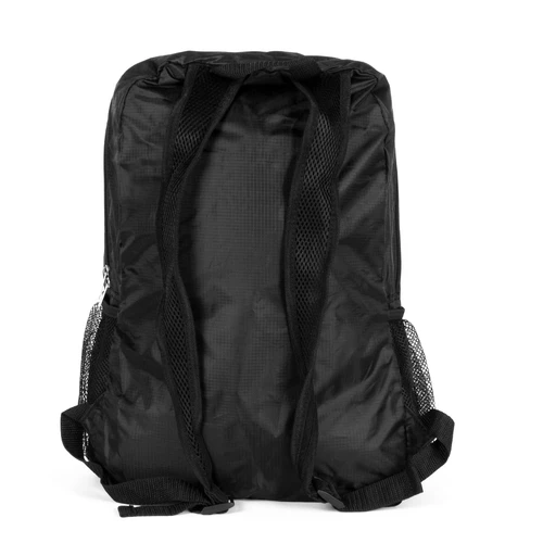 Mochila retráctil de poliéster Ripstop 210D. Se retrae y se guarda en bolsillo delantero, quedando de un tamaño rectangular compacto de 20 x 19 cm