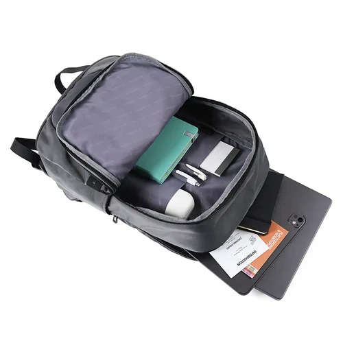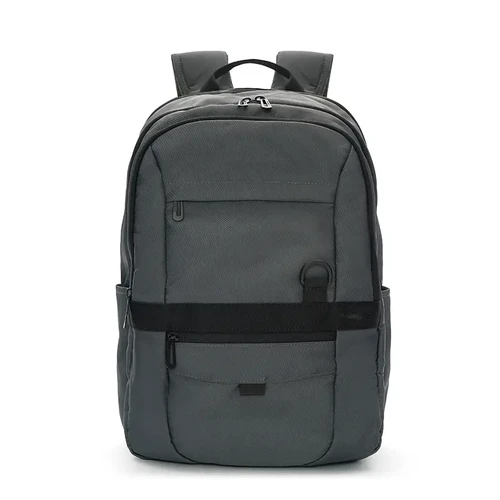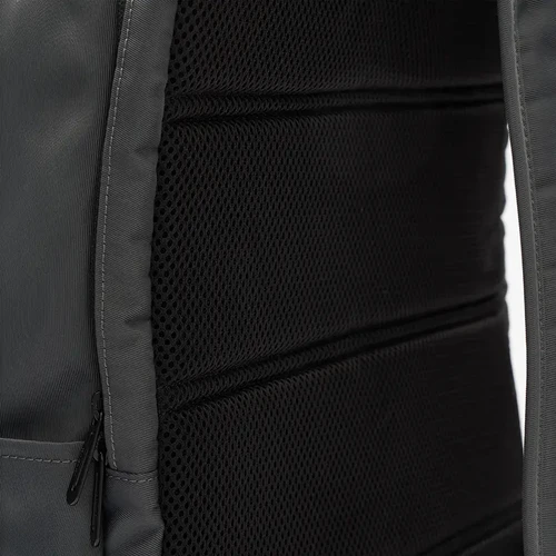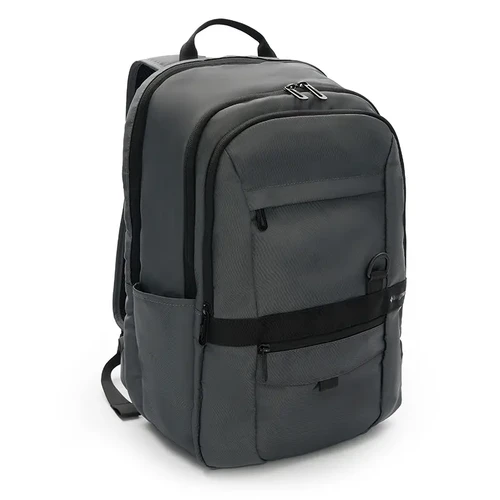 Mochila urbana con doble cierre y estructura reforzada. Está confeccionada en poliéster reciclado 420D, una opción sustentable y resistente para el uso diario. Cuenta con compartimiento principal amplio, bolsillo frontal con cierre, y tiras ajustables acolchadas para mayor comodidad Es ideal para ir al trabajo, estudiar o moverse por la ciudad.
