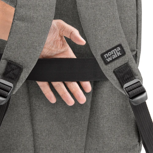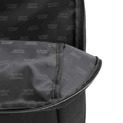 30 x 43 x 12 cm. Capacidad 14 litros. Poliéster 600D, interior poliéster 210D. Mochila portanotebook de 14 pulgadas. Compartimento lateral portanotebook, compartimento principal y 2 bolsillos frontales horizontales. Manija con refuerzo engomado, correas acolchadas, hebillas plásticas y cierres metálicos. Espalda acolchada. Tira para sujetar la mochila en la manija extensible de un equipaje de mano.