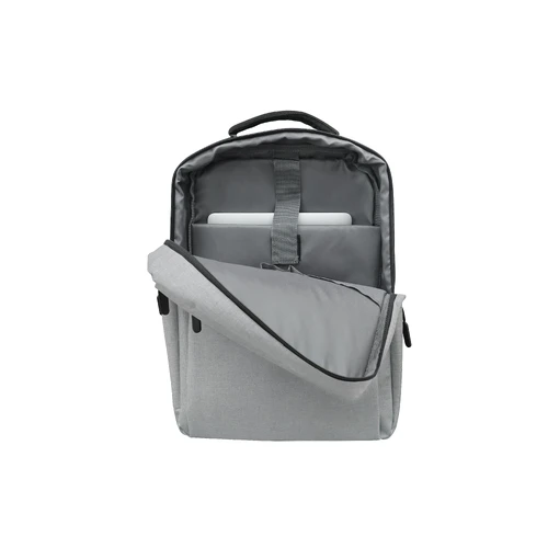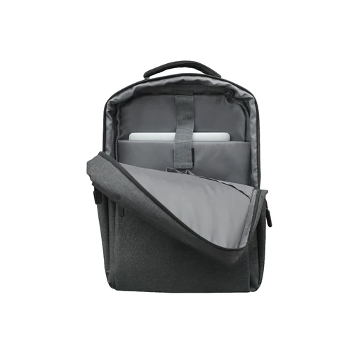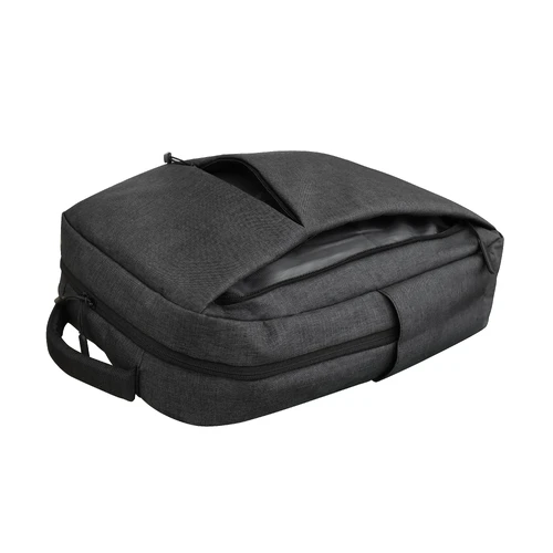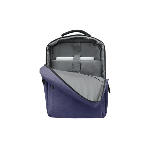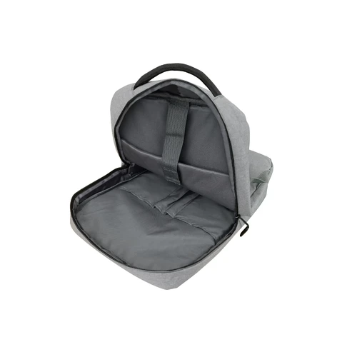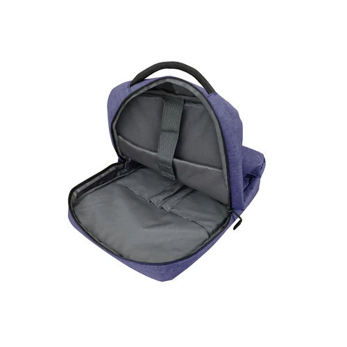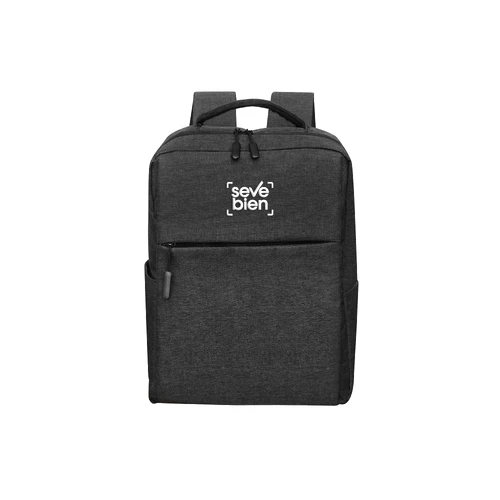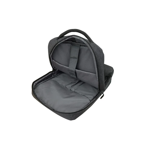 29 x 41 x 12 cm. Capacidad 14 litros. Políester 300D. Mochila portanotebook de hasta 16 pulgadas. Compartimento principal con bolsillo acolchado porta notebook y bolsillos organizadores de accesorios. Bolsillo frontal y lateral con cierre. Correas regulables y espalda acolchadas. Tiradores de cierres engomados.