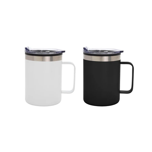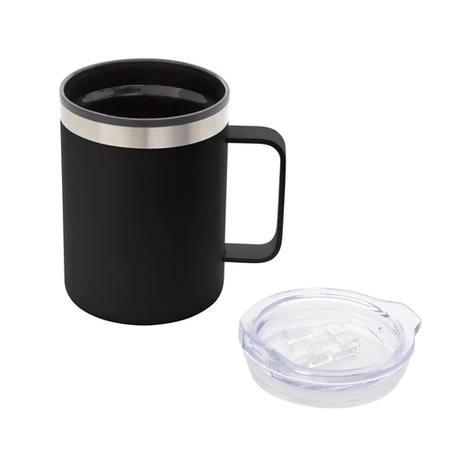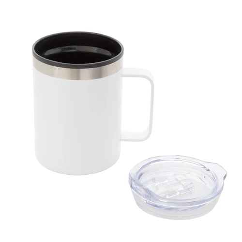 Hidrátate con modernidad.Mug doble pared. Interior de polipropileno y exterior de acero 201. Tapa plástica transparente a presión con anillo de silicona. Pintura acabado semimate. Base negra antideslizante.Medidas: Ø 8,8 cm x 12,5 cm.