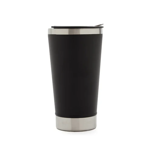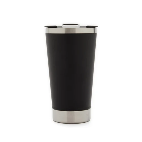 Mug de 600 ml fabricado en doble pared de acero inoxidable, diseñado para mantener la temperatura ideal, ya sea fría o caliente. Su tapa de PP incluye un destapador de botellas, combinando estilo y funcionalidad, perfecto para cualquier ocasión. El producto se presenta en una bolsa de PLA 100% compostable dentro de una caja de cartulina Kraft. Producto libre de BPA, aprobado por el I.N.A.L. para el contacto con alimentos.