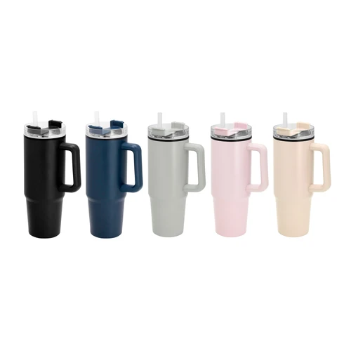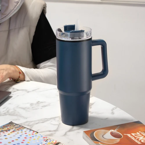 El acompañante ideal para cualquier ocasión. Mug doble pared con sorbete. Interior de plástico Polipropileno y exterior de acero 201. Tapa plástica transparente a rosca con anillo de silicona. Cierre giratorio porta sorbete. Sorbete plástico translucido. Pintura exterior con acabado mate. Mantiene las bebidas frías y calientes por más tiempo. Medidas: Ø 8,8 cm x 24 cm.