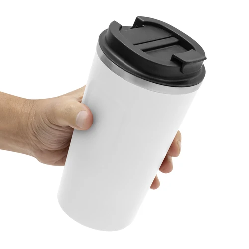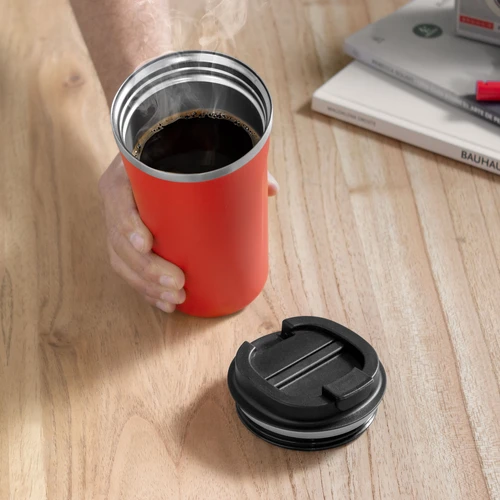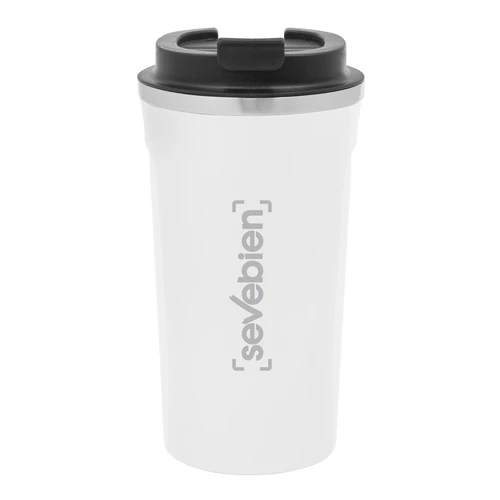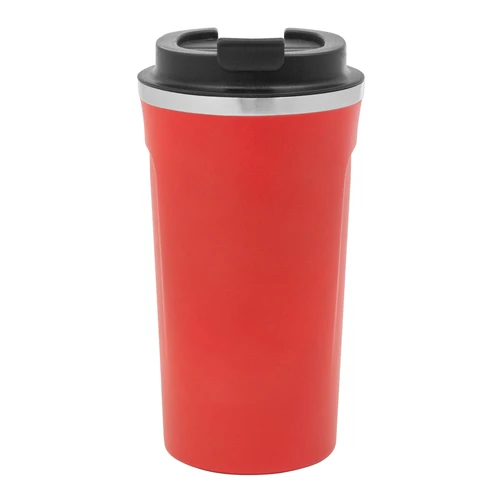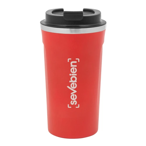 Ø 9 x 16,5 cm. Capacidad 500 ml. Acero Inoxidable. Mug doble pared, sellado al vacío. Interior acero 304 y exterior acero 201. Tapa plástica a rosca con seguro hermético antiderrame. Pintura Powder Coat (pintura mas duradera y resistente a la corrosión y el paso del tiempo).Mantiene hasta 8 hs la temperatura de las bebidas calientes y hasta 12 hs la de las bebidas frías. Presentación en caja de regalo.