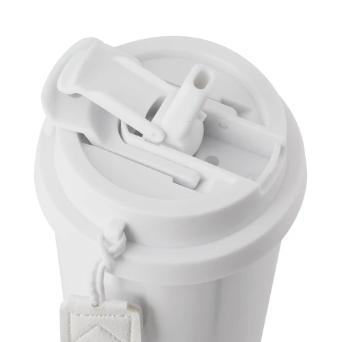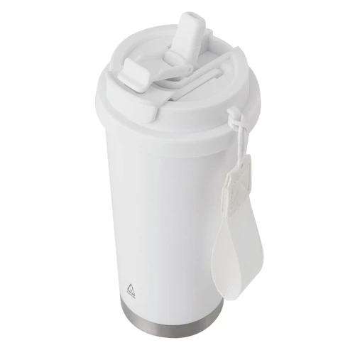 Ideal para jornadas largasMug doble pared, sellado al vacío. Interior en acero 304 y exterior en acero 201. Tapa de polipropileno a rosca y anillo de silicona, 2 en 1, con bombilla de polietileno incorporada, seguro antiderrame a presión y correa de poliéster. Tapa y correa del mismo color que el vaso. Pintura con acabado mate, textura suave al tacto. Base en acero 201. Mantiene hasta 12 hs la temperatura de las bebidas calientes y 24 hs de las bebidas frías.Medidas: Ø 9 x 19 cm.