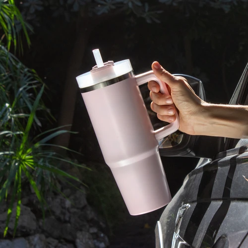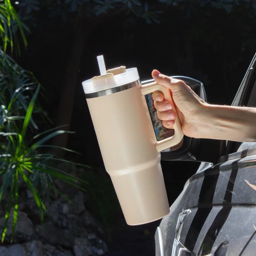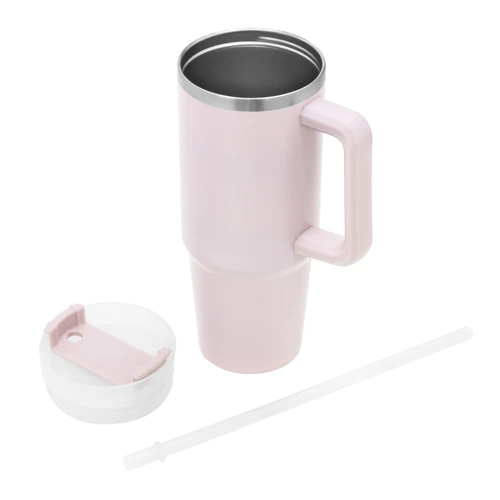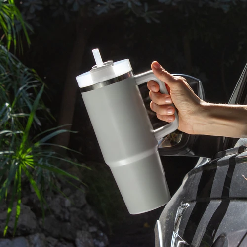 Diseño Térmico. El favorito de quienes nunca se detienen. Mug doble pared, sellado al vacío con sorbete. Tecnología Vacuum. Interior en acero 304 y exterior en acero 201. Tapa plástica transparente a rosca con anillo de silicona. Cierre giratorio porta sorbete. Sorbete plástico translucido. Pintura exterior con acabado mate. Mantiene hasta 8 hs la temperatura de las bebidas calientes y hasta 12 hs la de las bebidas frías. Medidas: Ø 8,8 cm x 24 cm.