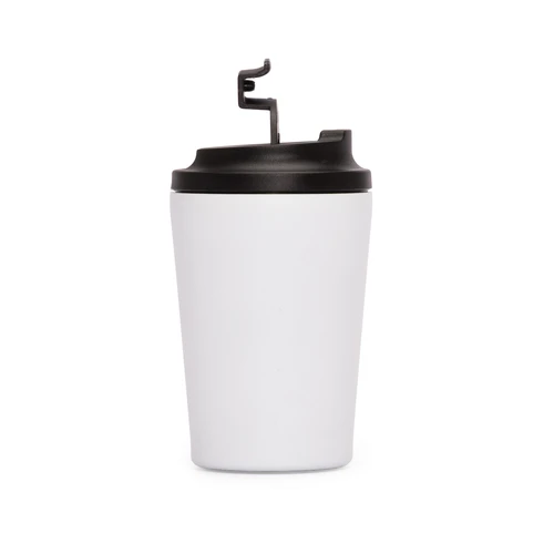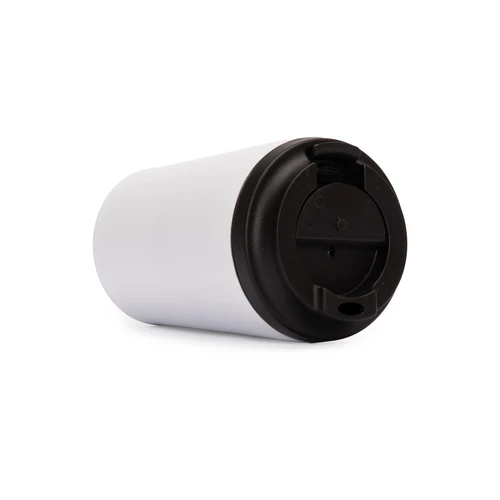 Mug térmico metálico "NORWAY" doble pared aislante, cubierta de Polipropileno (PP) acabado mate, interior Acero inoxidable 304 SS, exterior Acero inoxidable 201 SS. Capacidad 355ml. Incluye tapa rosca de polipropileno negro, con dosificador y argolla de silicona negra anti-derrame. En su parte inferior, cuenta con goma de silicona negra anti-deslizante. Producto BPA FREE, para el contacto con líquidos y alimentos. Ideal para café, té, bebidas frías o calientes. Tapado correctamente, aisla líquidos calientes o fríos por más de 12 horas. Presentación en plástico burbuja + caja de cartón laminado negro. PRECAUCIÓN: no usar en horno microondas ni llenar con bebidas gaseosas.