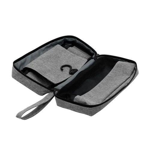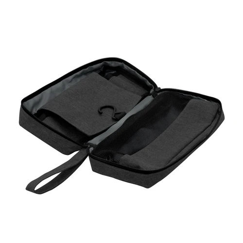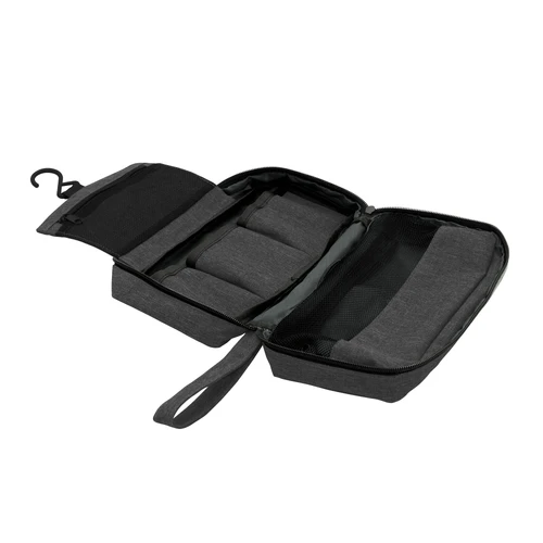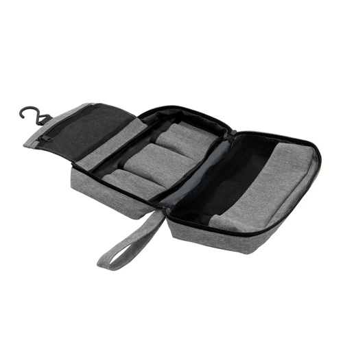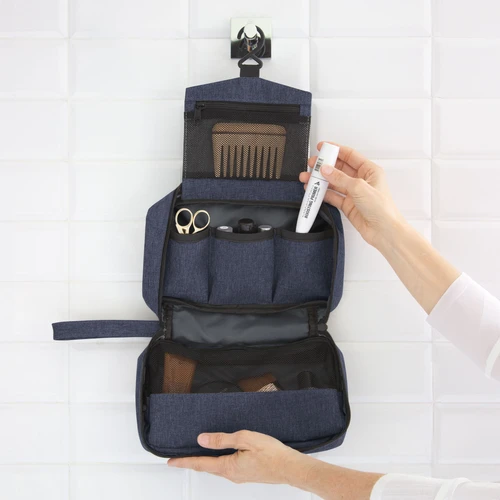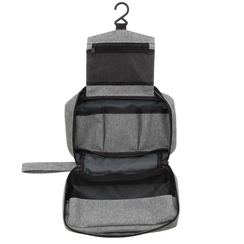 Organiza tu viaje con estilo Y practicidad.Necessaire colgante. Compartimento principal con cierre y asa de tela para transportar. Interior: compartimento superior rebatible con gancho para colgar y bolsillo de red con cierre, compartimento central con 3 bolsillos y amplio compartimento inferior con ventana de red y cierre. Medidas: 25 x 7,5 x 13 cm (cerrado) y 25 x 7,5 x 51 cm (abierto).