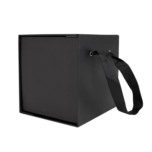 •Presentación: Caja de Regalo de Cartón lacado negro con asas de poliéster negro.