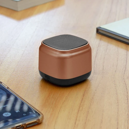 Sonido potente y estilo modernoParlante bluetooth. Posee botonera de silicona en la base y malla metálica negra en la parte superior. La base del parlante es antideslizante. Micrófono incorporado. Permite recibir llamadas. Cable de carga y conexión USB tipo C color negro. Medidas: 7 x 7 x 5,8 cm.