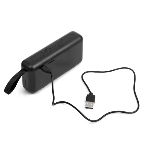 Parlante portátil con tecnología Bluetooth, micrófono manos libres y modo radio FM, realizado en ABS. Incluye ranura para lectura de tarjetas de memoria micro SD. | Batería de 500mAh | Potencia del parlante: 3W | Conexión5V/300mA | Peso: 160g | Medidas120 x 30 x 60mm |