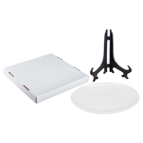 Plato de Porcelana tamaño mediano, con cobertura para Sublimación. Presentación en caja de cartón blanco.
