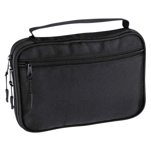 Bolso Porta-Accesorios de Viaje, en tela Polyester 840D. Gran cantidad de bolsillos y compartimentos para accesorios, bolígrafos, tarjetas de memoria, etc. Con gancho de tela para colgar. Un bolso práctico y pequeño, ideal para llevar dentro de tu equipaje de mano.