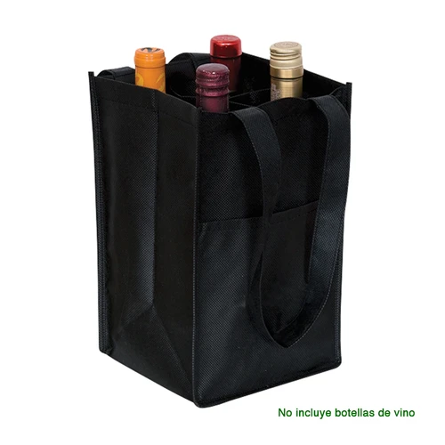 Porta-Botellas de vino, para 4 unidades, en tela no tejida (TNT) reforzada de 100g/m2.
