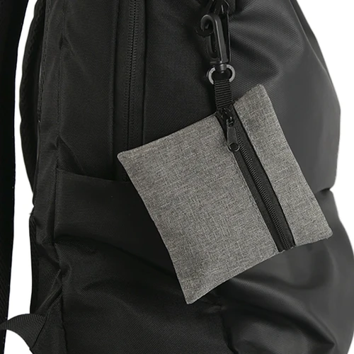 Porta objetos fabricado en poliéster 300D bicolor. Cuenta con cierre y gancho plástico. Es ideal para llevar pequeños accesorios o efectivo.