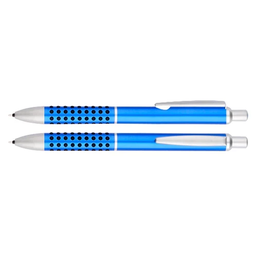 Portaminas metálico satinado modelo "Caterpillar", con lunares de goma negra que brindan una suave sensación de masaje dactilar al escribir.