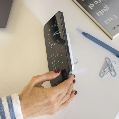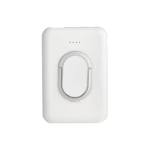 Carga sin cables, estilo sin límitesPower bank inalámbrico con aro magnético y soporte de anillo. Color blanco mate y negro brillante. Posee Entrada y salida: 5V 2A. Con 2 puertos de carga USB-C y micro USB. Función inalámbrica magnética. Potencia inalámbrica: 5W. Indicador luz led de carga. Soporte plateado rebatible al dorso. Cable de carga USB-C de 30 cm. en color blanco. Medidas: 9,4 x 6,4 x 1,6 cm.