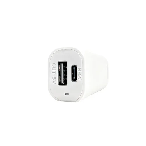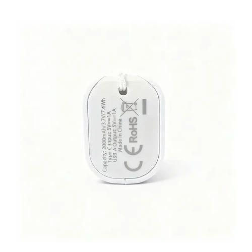 Power bank portátil hecho de ABS con batería de polímero de litio fabricado en un diseño compacto y ligero. Cuenta con entrada Tipo-C y salida USB-A de 5V/1A (5W de potencia máxima), incluye cable de carga USB-A a USB-C y posee un diseño ligero con correa para fácil transporte. Es ideal para llevar en el bolsillo y recargar dispositivos esenciales durante salidas rápidas, viajes o uso diario.