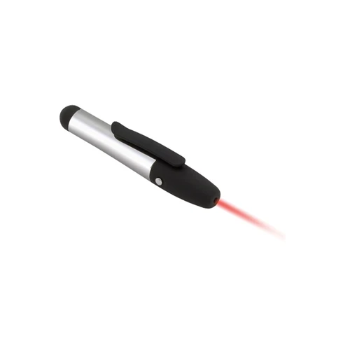 Puntero Láser con Puntero Touch-Screen. Cuerpo de color metalizado. Terminales negros. Presentación en cajita de regalo negra.