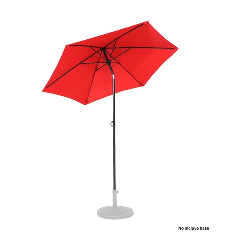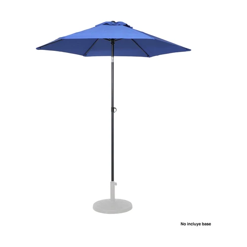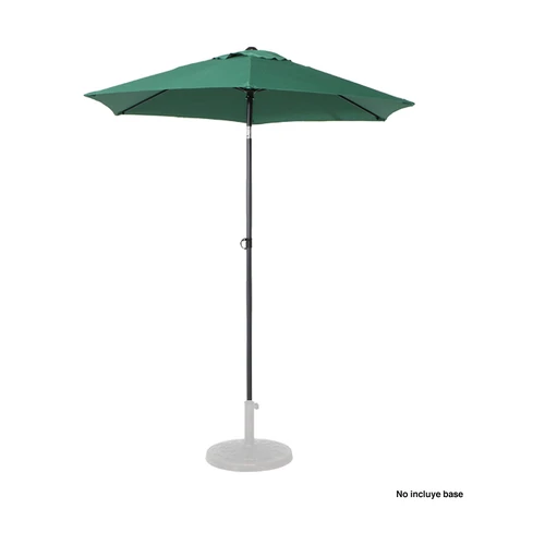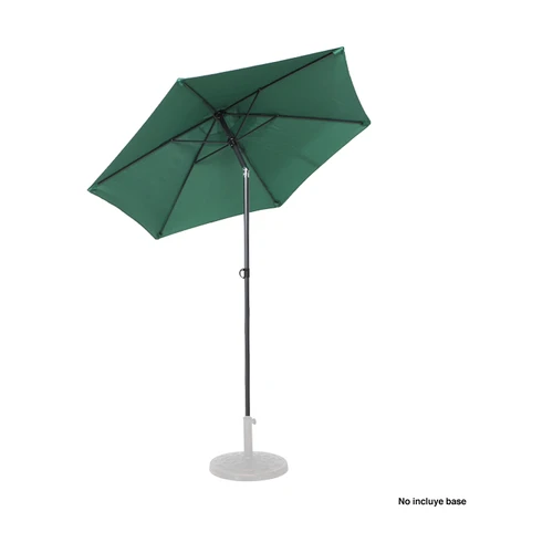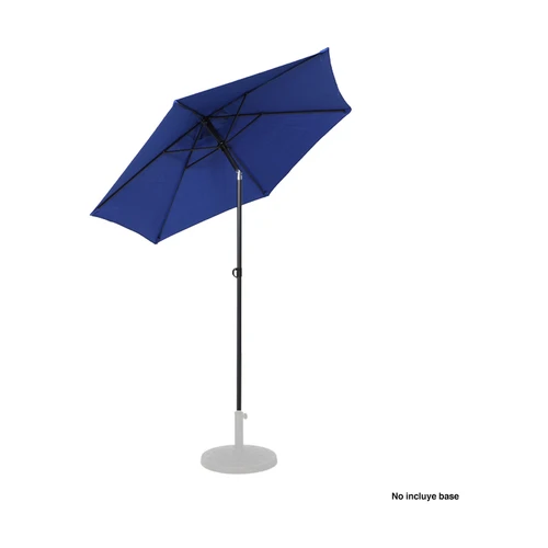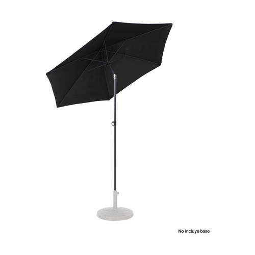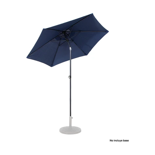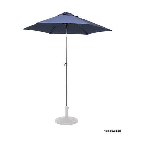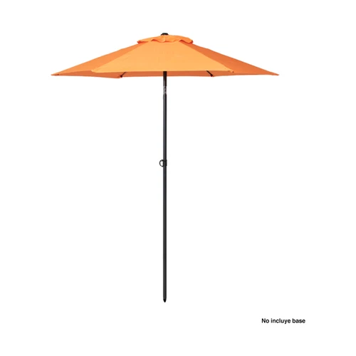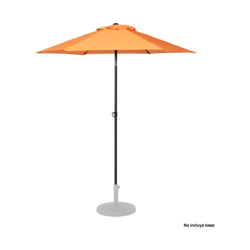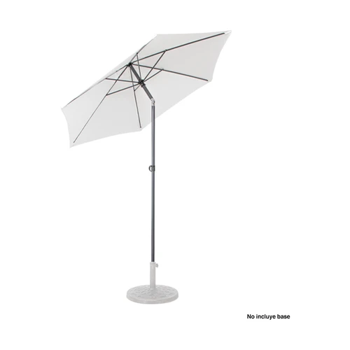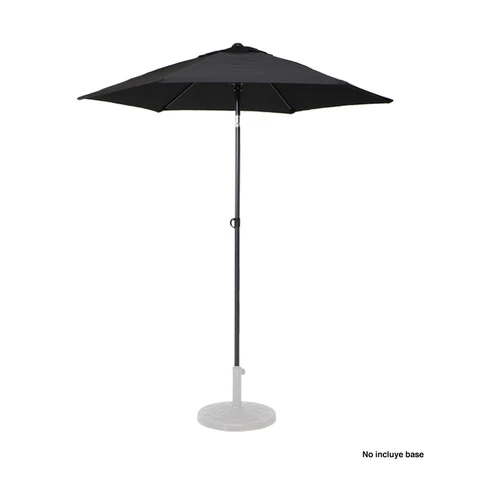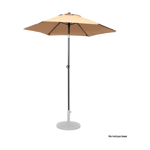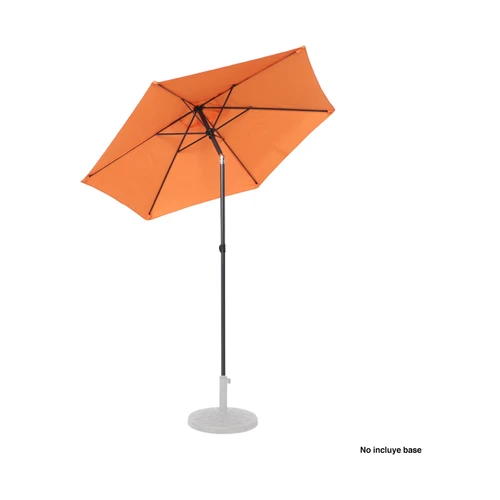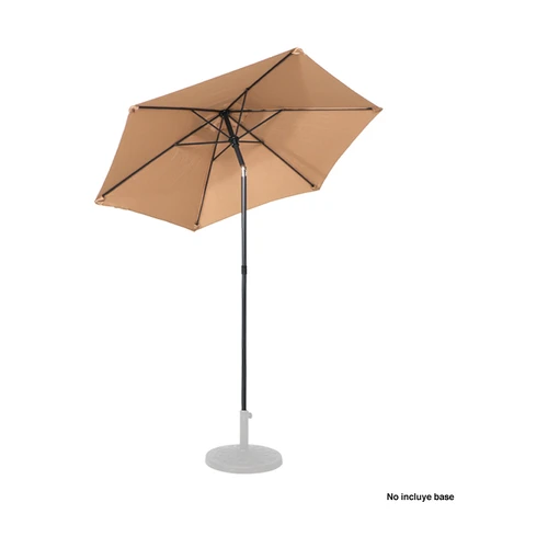 Quitasol redondo de Ø2m, modelo "Twist", con 6 cascos de lona Poliéster UV impermeable de 160g. Contiene varas reforzadas de Acero recubierto de 12 x 18mm, asta de Acero recubierto de 32mm, sistema de apertura manual y codo giratorio de 45°. No incluye base.