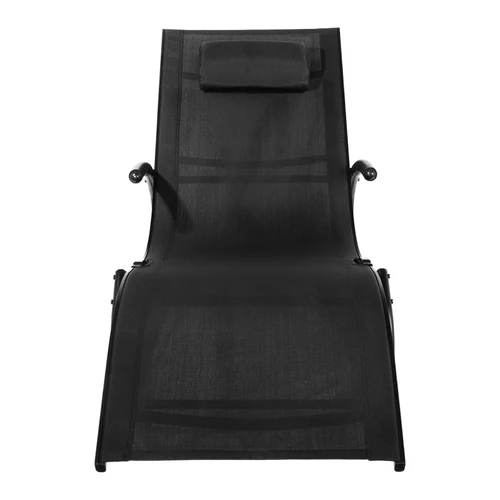 Reposera mecedora negra con apoya-brazos, modelo "Ventus". Estructura de Aluminio color negro, asiento de Textilene negro. Descanso y relajo verdaderos.