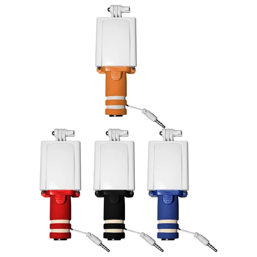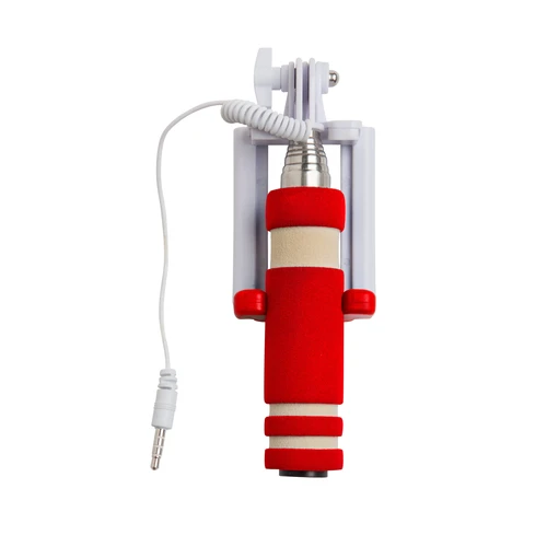Cerrado 15 cm. Extendido 60 cm. Plástico y EVA. Palo extensible para selfie. Cuenta con botón de disparo. Funciona con Android v. 4,2 o mayor, no necesita instalar aplicaciones extras. Donde se coloca el celular tiene una amplia placa plástica que permite aplicar el logo. Incluye cable de conexión. Presentación en caja de regalo.