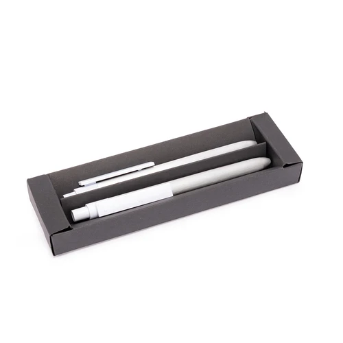 ANAPOIMA reúne lo esencial del diseño ejecutivo con una mirada comprometida con el planeta. Este set incluye bolígrafo y portaminas fabricados en aluminio reciclado, con cuerpo plateado y detalles en fibra de trigo que aportan un contraste natural. Empacado en una caja negra elegante, ANAPOIMA es una excelente alternativa para transmitir sofisticación sin exceso, y ligereza sin descuido ambiental. Tu marca cobrará fuerza al asociarse con herramientas que reflejan precisión, estilo y responsabilidad en cada detalle.