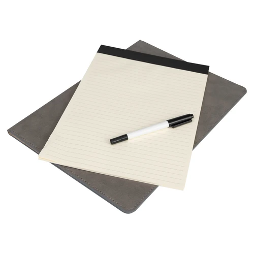 Set de Escritura con Carpeta tamaño A4 de Termo-PU con costura modelo "PHILLIP", interior block de apuntes con 80 hojas lineadas amarillas de 80g + pizarra blanca laminada + lápiz de tinta negra removible.