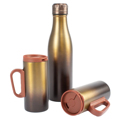 Set de 2 tazones 250cc. + termo 500cc, de Acero Inoxidable, en caja de cartón color negro.