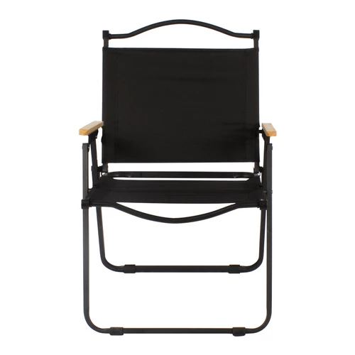 Silla de Camping y Playa de lona, tela Oxford 600D raquelada y base plegable de Acero negro de 20 x 15 x 1mm, con apoya-brazos de madera de Haya. Un práctico producto para ir de camping o a la playa.