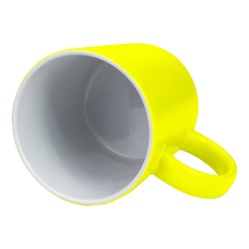 Tazón cerámico de 11oz (330 cc) con superficie exterior de color fluorescente, interior blanco, para Sublimación. Producto de calidad superior ORCA. Presentación en bolsa plástica translúcida + caja de cartón blanco.