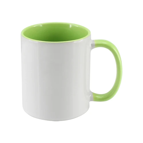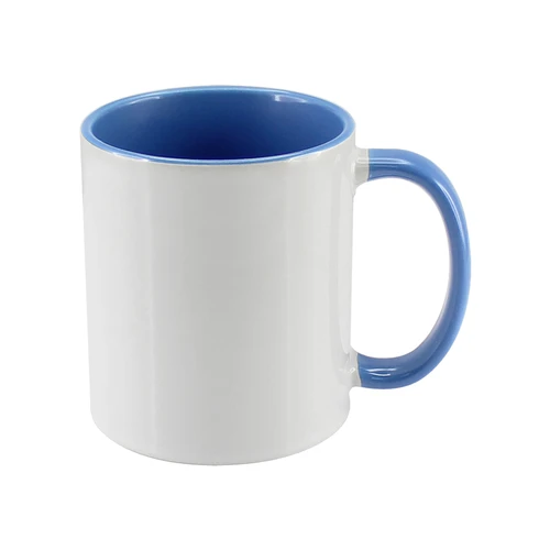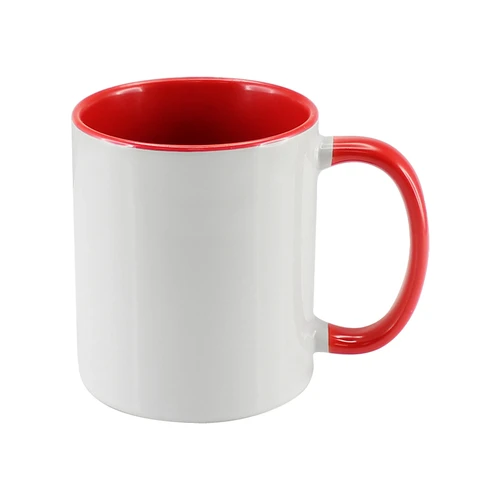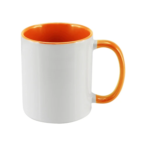 Tazón Cerámico blanco con interior y asa de color, cobertura exterior con polímero especial marca ORCA COATINGS(R) para una sublimación de primera calidad. Cada unidad se entrega dentro de su caja individual de cartón blanco.