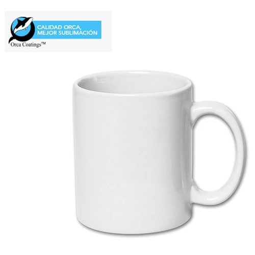 Tazón Cerámico extra-blanco. Cobertura exterior con polímero especial marca ORCA COATINGS(R) para una sublimación de primera calidad. Cada unidad se entrega dentro de su caja individual de cartón blanco.