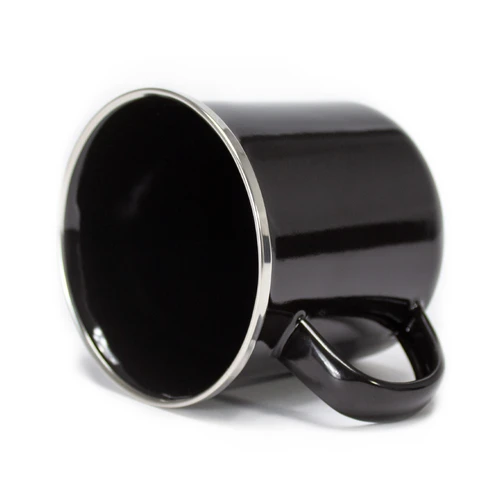 Tazón de acero enlozado "Enamel" de 350cc. con cobertura negra. Único con borde de Acero Inoxidable, que entrega higiene y protección al contacto con tu boca.