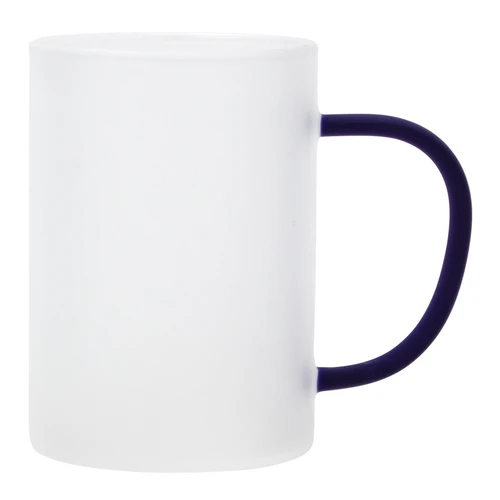Tazón de Vidrio Empavonado para Sublimación, para líquidos fríos, con asa de color sólido. Capacidad 330ml. Presentación bolsa plástica empavonada + caja de cartón blanco. Calidad Premium ORCA.