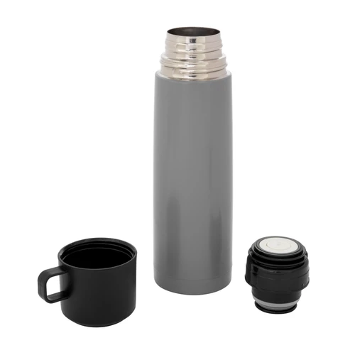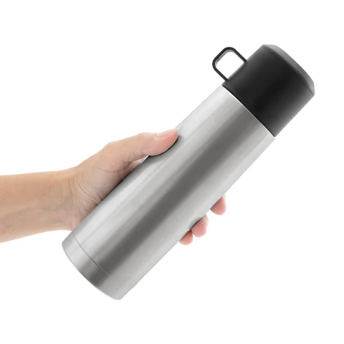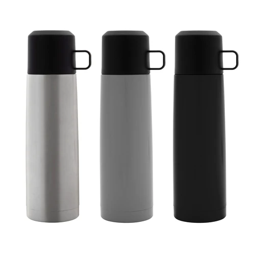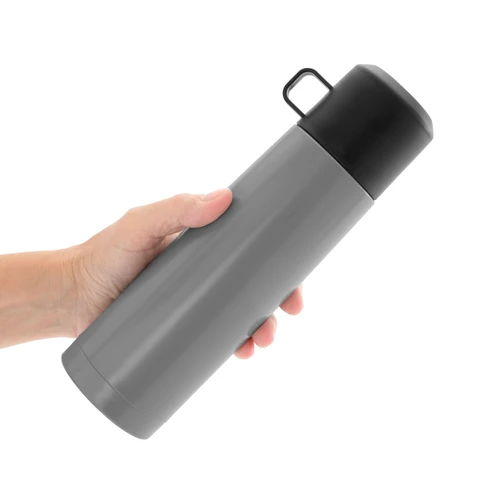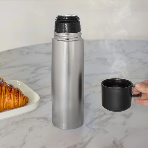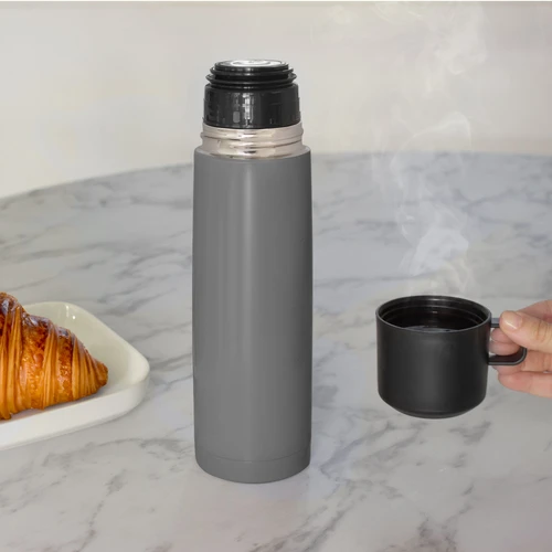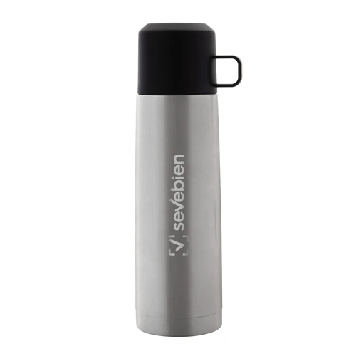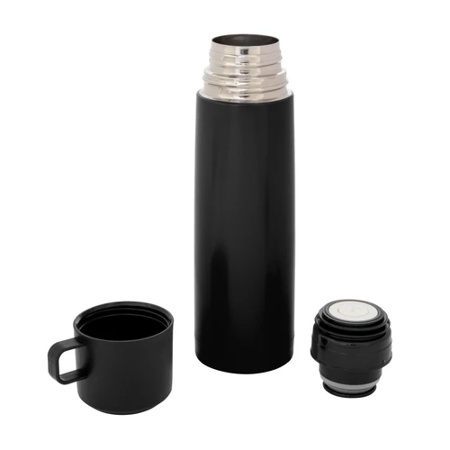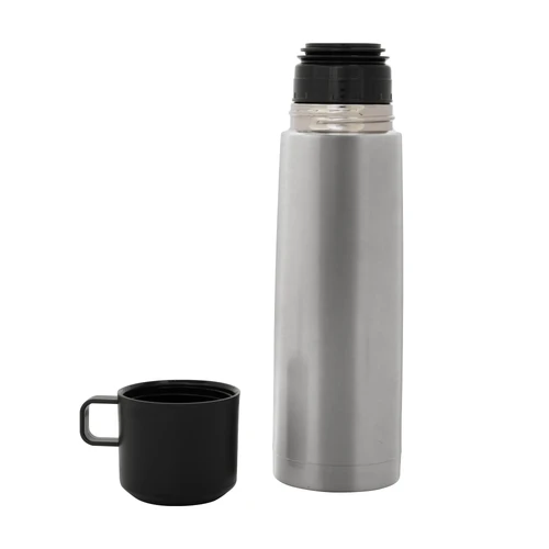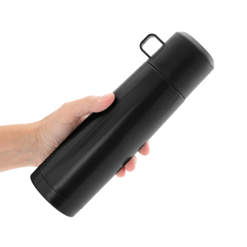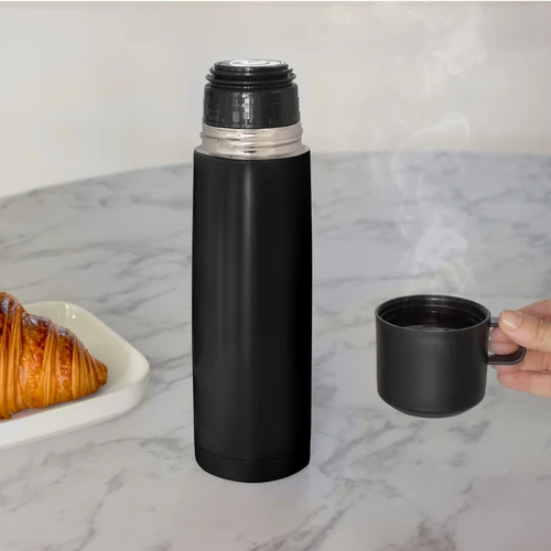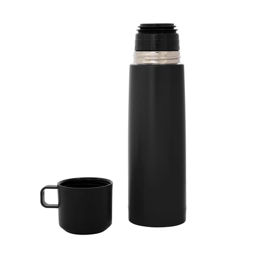 Disfruta de cada sorbo, caliente o frío.Termo con doble pared sellado al vacío. Tecnología vacuum. Acero inoxidable 304 interior / 201 exterior. Tapa y taza plásticas en color negro. Pintura acabado mate. Mantiene hasta 6 hs la temperatura de las bebidas calientes y hasta 10 hs la de las bebidas frías.Medidas: Ø 7 x 24 cm