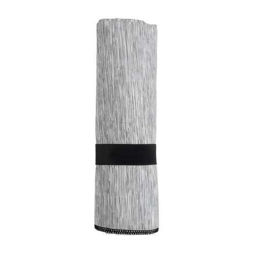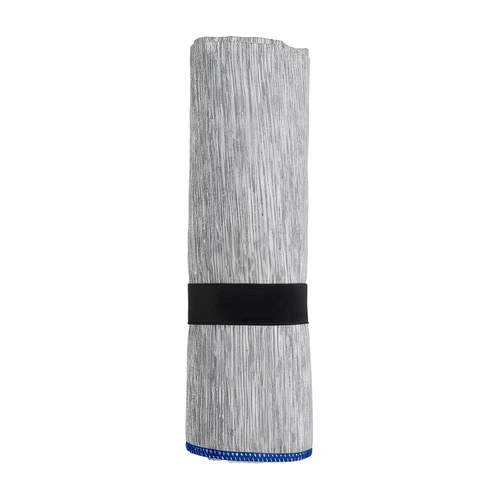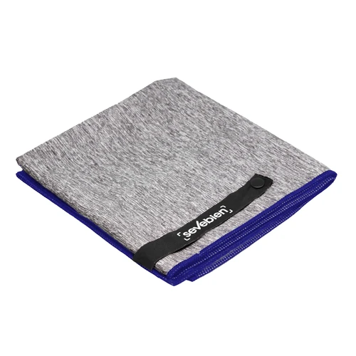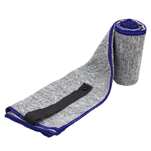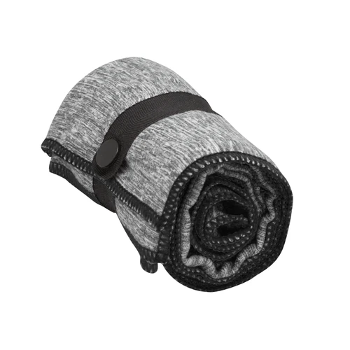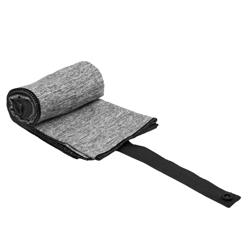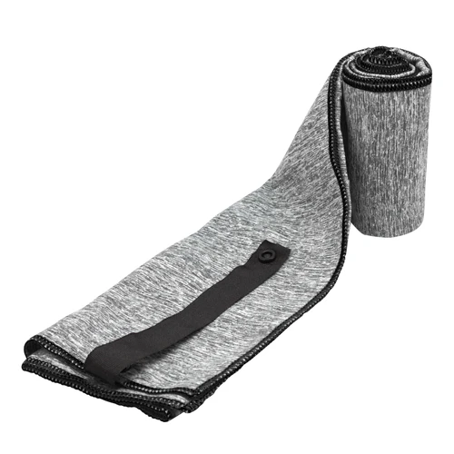 80 x 40 cm. Microfibra. Toalla de microfibra de secado rápido. Poliéster (200 g x m2) catiónico doble cara. Cinta negra que permite enrollar la toalla y aplicar logo.
