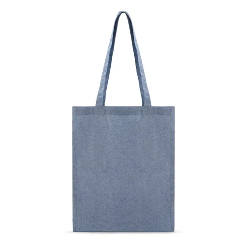 Tote bag fabricada en algodón reciclado de 140gsm en colores azul melange y gris melange. Ideal para quienes buscan una bolsa de algodón versátil y elegante, perfecta para uso diario, como ir al gimnasio, hacer compras o llevar tus objetos personales con comodidad. Medidas: 40 x 34 cm. ReUseMe