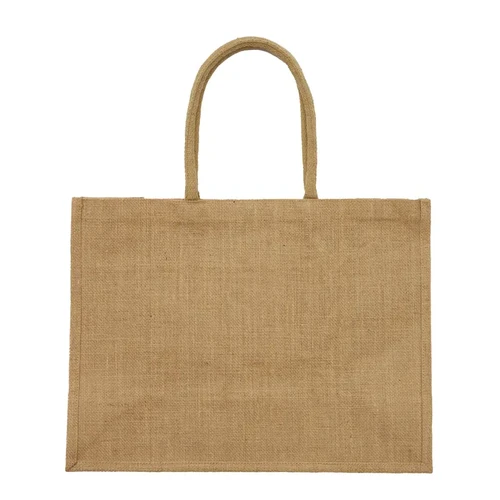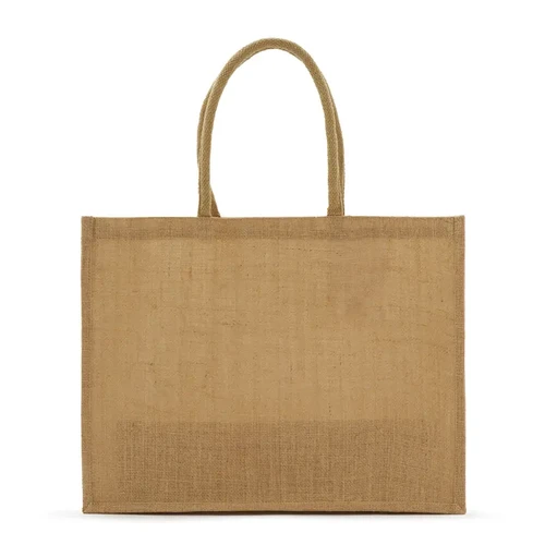 Tote bag fabricada en yute recicado laminado. Ideal para quienes buscan una bolsa resistente y espaciosa, perfecta para llevar compras, libros o cualquier objeto personal de forma cómoda y ecológica. Medidas: 35 x 46 x 19 cm. ReUseMe
