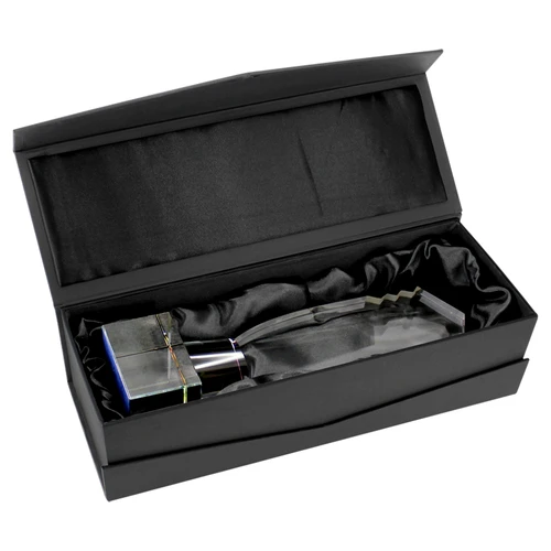 Deluxe Trofeo grande de Cristal modelo "Win". Base Cristal Tornasol. Presentación en caja de cartón forrado negro.