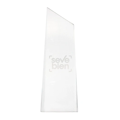 Premia la excelencia.Trofeo de vidrio simil cristal. Presentación en estuche con cierre magnético y envoltorio de papel blanco.Medidas: 24 x 8,5 x3,5 cm.