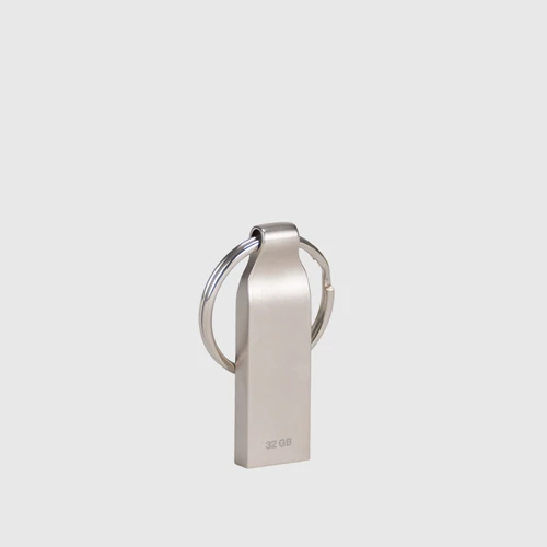 Pendrive "Bot" USB 2.0 con 32GB de memoria. Incluye argolla redonda para llavero. Presentación en práctico blister de cartón reciclado con ranura para ganchera, y estuche plástico translúcido para remover el pendrive directamente.