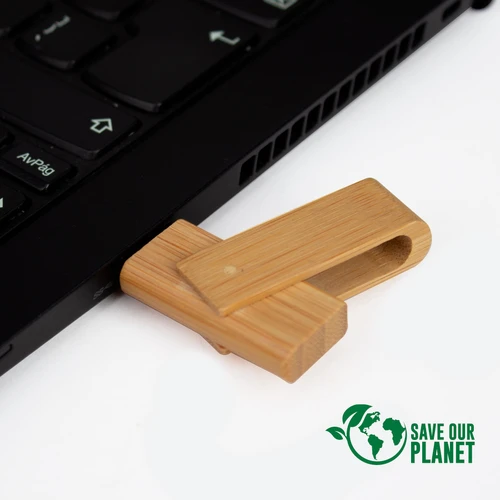 Deluxe USB Pendrive 2.0 de 64GB de capacidad, 100% en madera de Bamboo (barnizado), con carcasa giratoria removible. Presentación en elegante estuche de madera de Bamboo (barnizado).