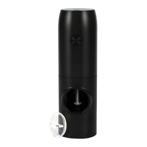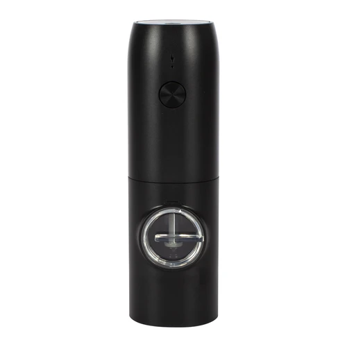 Pimentero Eléctrico con luz blanca y cargador USB/Type-C, materialidad plástico ABS negro + acero inoxidable. Potencia Cargador Type-C: 500mAh. Presentación en caja de regalo con gráfica y fotografía del producto a todo color.