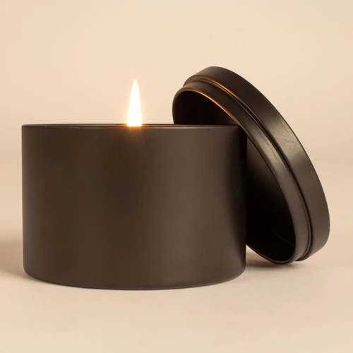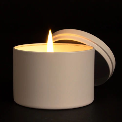 Vela aromática de 8oz en envase redondo de aluminio con tapa. Ideal para regalo de hogar y aromaterapia. Amplia superficie de impresión de logo.